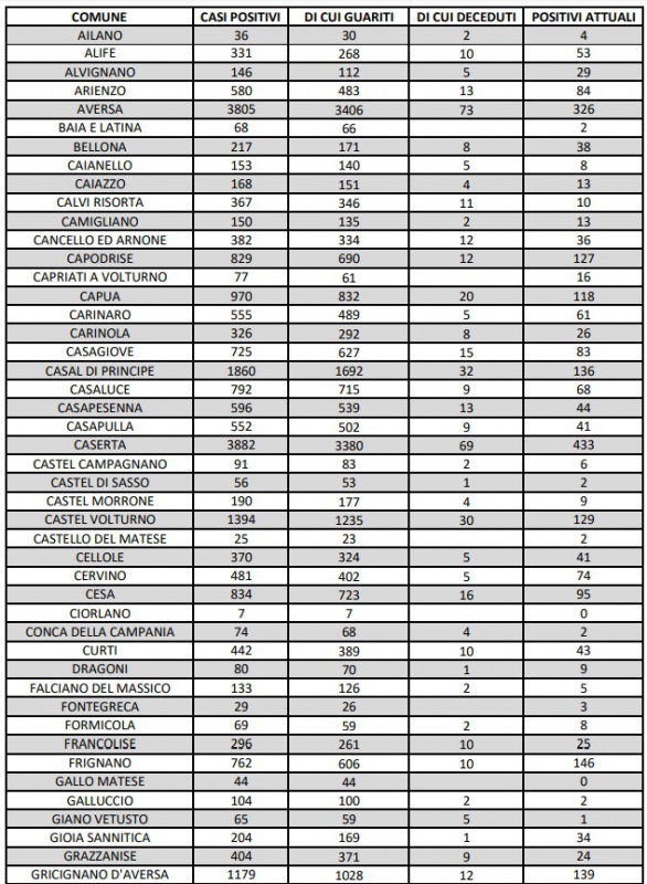 Questo quanto apprendiamo dall'ASL Caserta