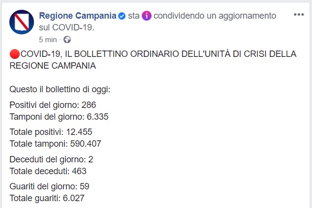 Questo quanto pubblicato da Regione Campania