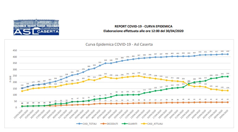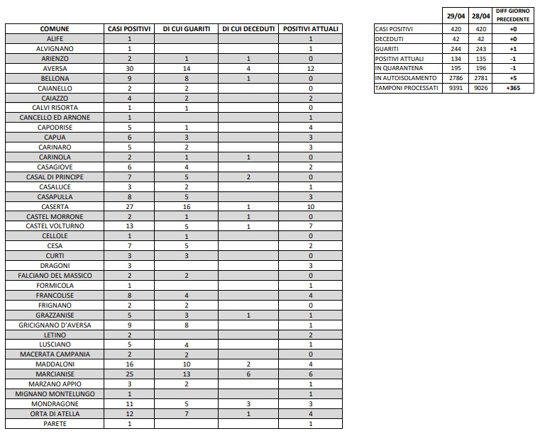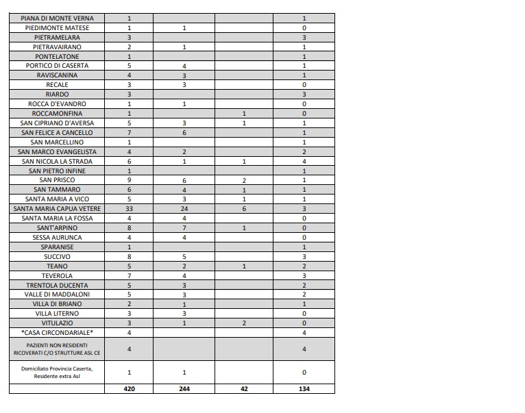 Questi i dati emanti dall'ASL Caserta suddivisi per Comune