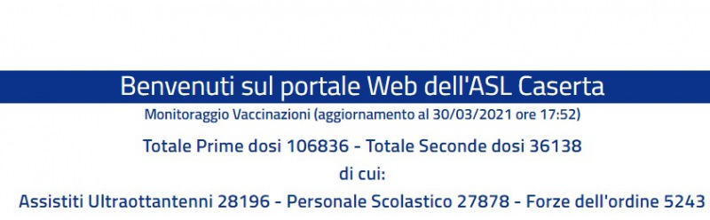 Questo quanto pubblicato sulla pagina facebook del Pres. De Luca in merito ai dati delle vaccinazioni anti-covid al 29 marzo. Si può vedere il totale delle somministrazioni, a quante persone è stata già somministrata la seconda dose. Presente anche il dato ufficiale dell'Asl di Caserta sulle dosi somministrate in provincia:
