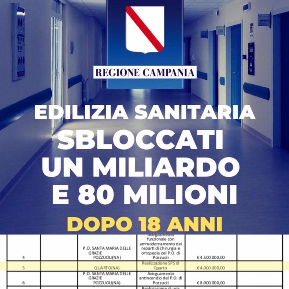 "La Regione Campania ha destinato 4.000.000€ per la realizzazione di una struttura sanitaria polispecialistica e polivalente sul nostro territorio. Un intervento che la nostra città aspettava da oltre 40 anni, e che finalmente abbiamo ottenuto grazie alla sinergia istituzionale che siamo riusciti ad instaurare. Questo risultato è il frutto di un anno di duro lavoro di squadra insieme al Direttore Generale dell’Asl Napoli 2 Nord, Dott. Antonio D’Amore che ringrazio, unitamente al direttore del servizio tecnico asl Ing. Antonio Galdiero ed il direttore del servizio tecnologie informatiche ed ingegneria clinica Ing. Salvatore Flaminio che ci hanno seguiti lungo tutto il percorso. Un enorme GRAZIE, soprattutto, al governatore della Campania, Vincenzo De Luca, per aver sbloccato questi fondi dopo 18 anni di stallo e per il suo costante interessamento verso la città di Quarto. Una vittoria per tutti i cittadini. CE L’ABBIAMO FATTA!"