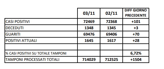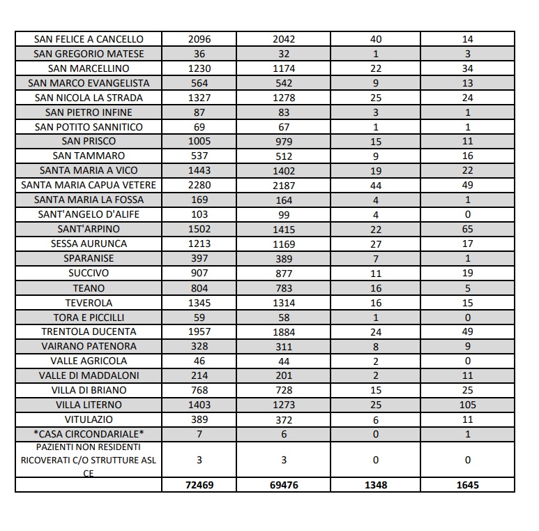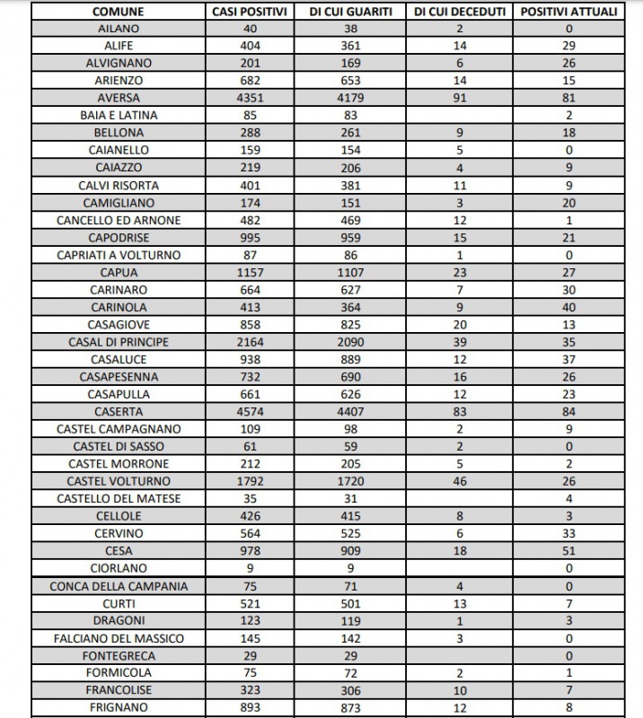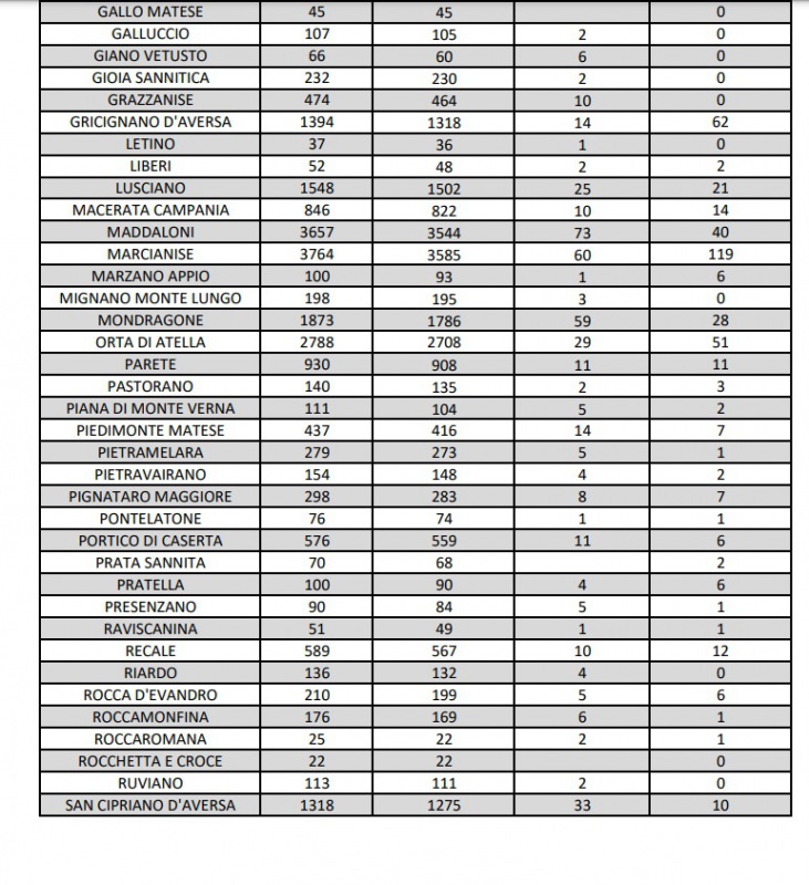 4/11. 3 decessi e aumento di 28 positivi al Covid in Prov. di Ce. Dati Comune per Comune