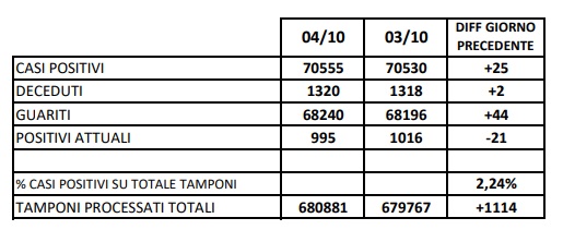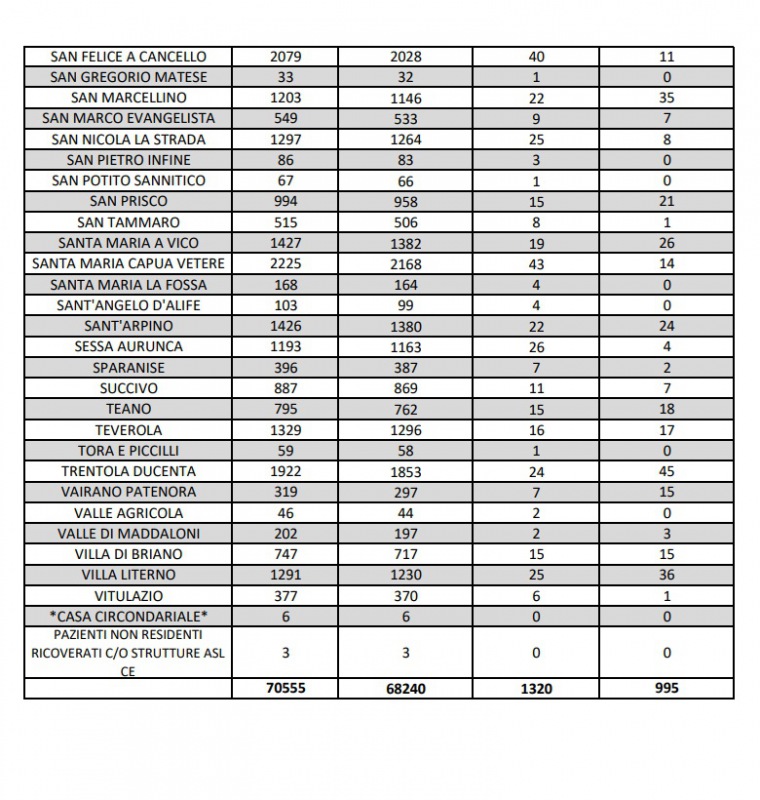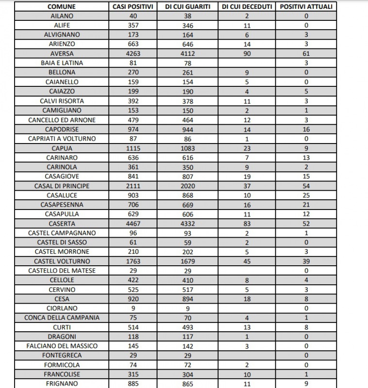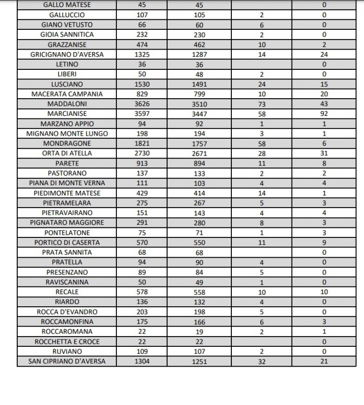 5/10. Registrati 2 decessi e 25 nuovi casi Covid in Prov. di Ce. Dati Comune per Comune