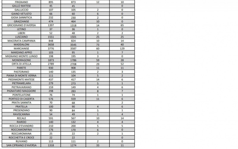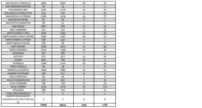 Questi i dati dell'Asl di Caserta