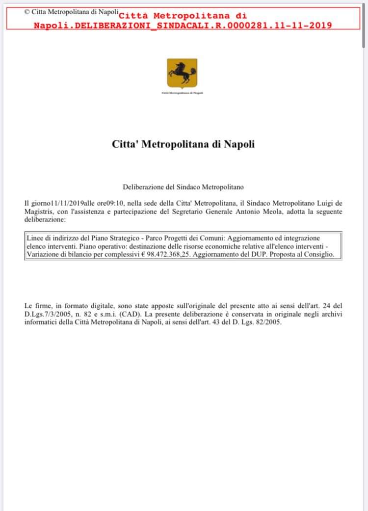 "APPROVATI E FINANZIATI 11 PROGETTI PRESENTATI DAL COMUNE DI QUARTO ALLA CITTÀ METROPOLITANA DI NAPOLI