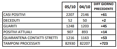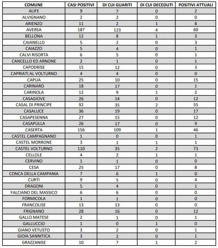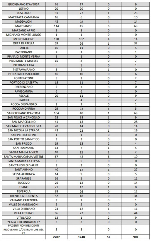 6/10. Agg. Covid-19. 61 NUOVI CONTAGI in Prov. CE. Dati ASL Comune per Comune