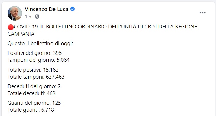 Questo quanto pubblicato da Regione Campania