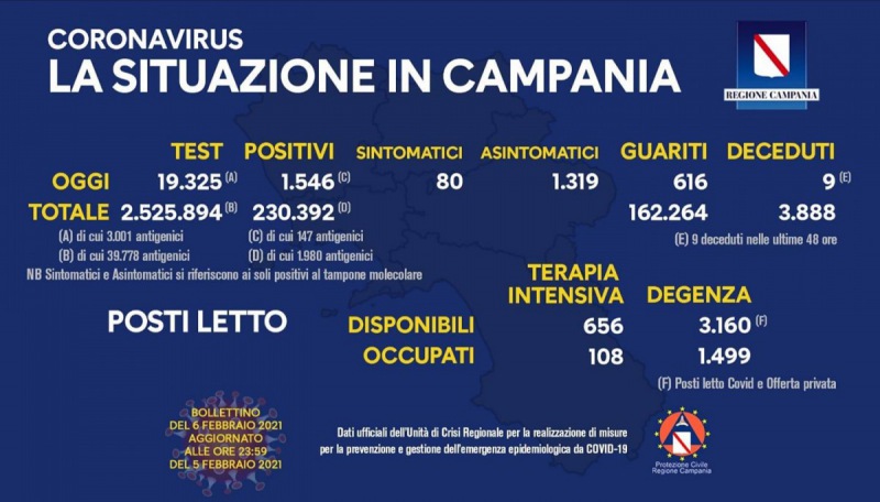 "COVID-19, IL BOLLETTINO ORDINARIO DELL'UNITÀ DI CRISI DELLA REGIONE CAMPANIA