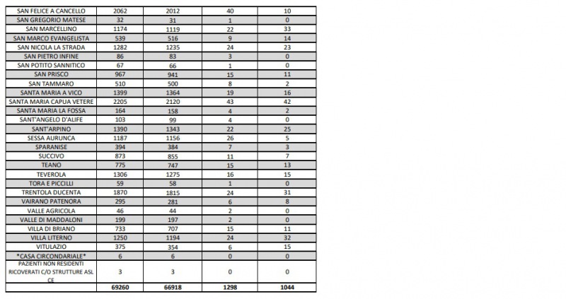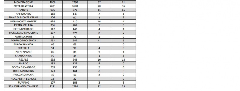 Questi i dati dell'Asl di Caserta