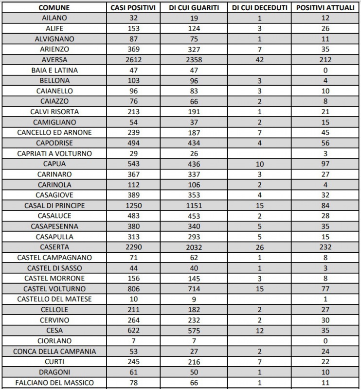 Questo quanto pubblicato dall'ASL Caserta