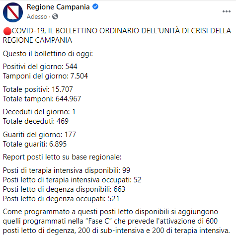 Questo quanto pubblicato dalla Regione Campania
