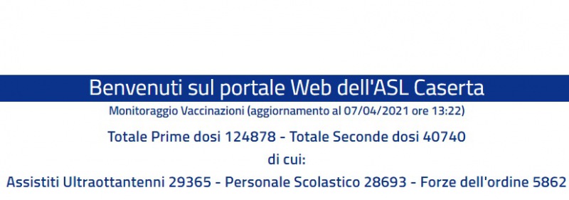 Presente anche il dato delle vaccinazioni somministrate in provincia di Caserta dalla locale Asl.