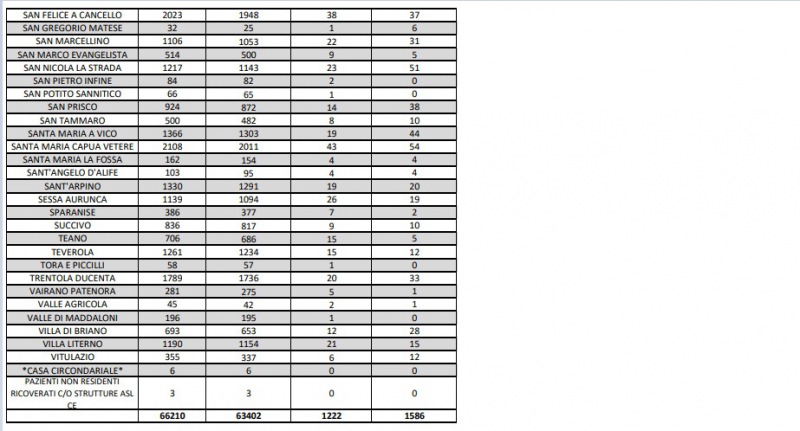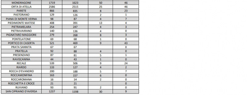 Questi i dati dell'Asl di Caserta