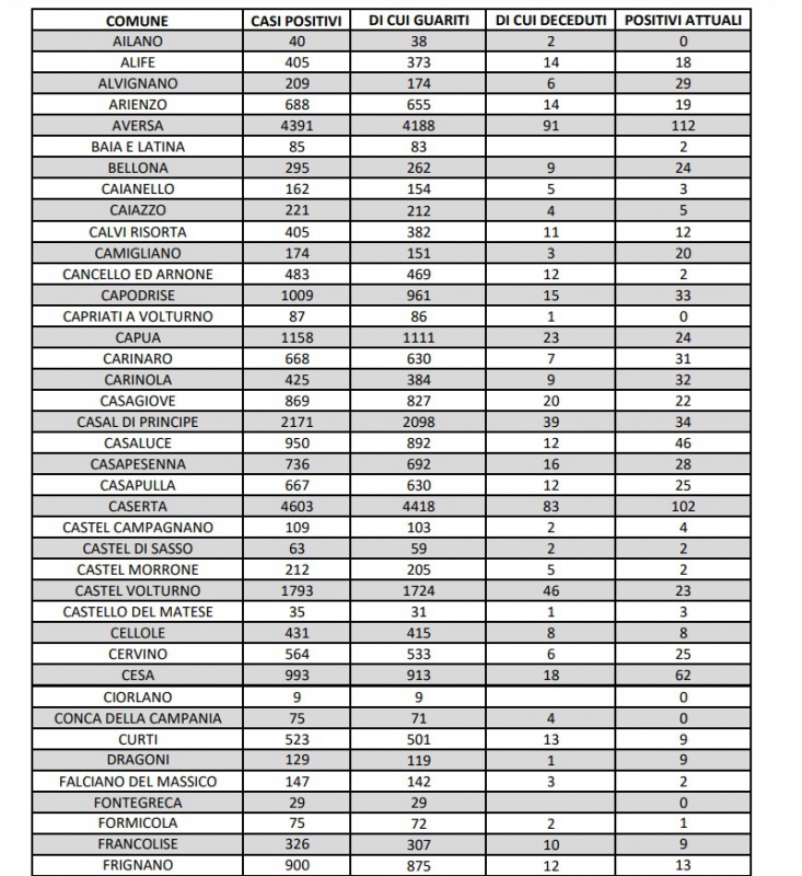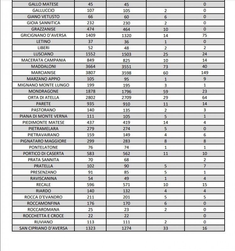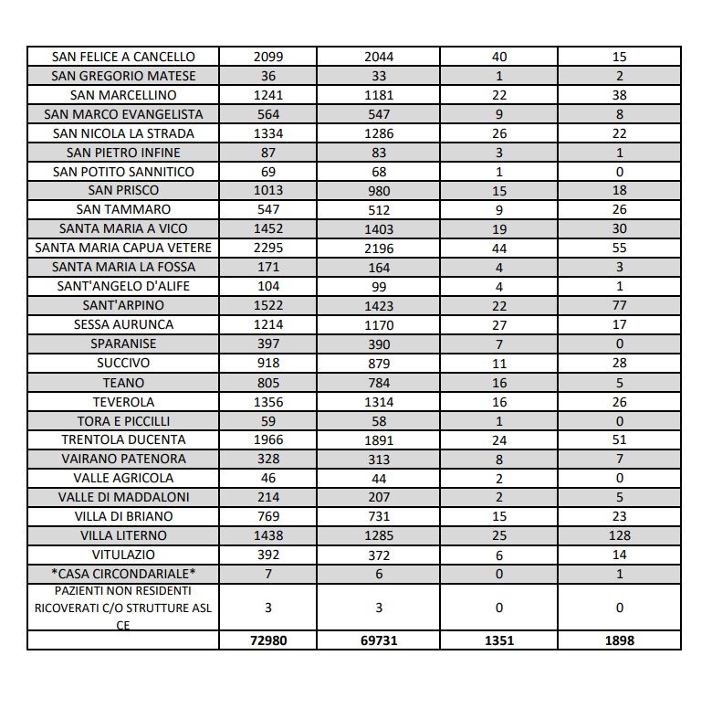 9/11. A Marcianise 149 positivi al Covid, segue Villa Literno con 128. Dati Comune per Comune