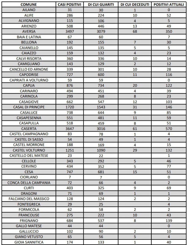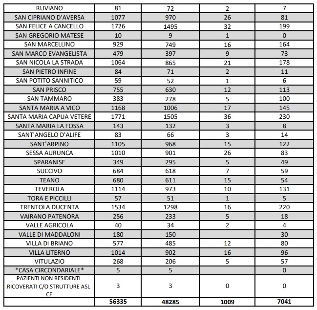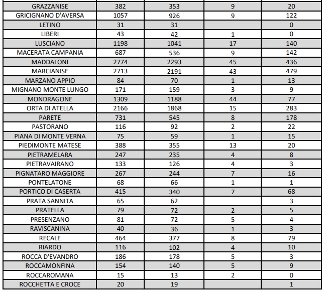 Questo l'aggiornamento epidemiologico dell'ASL CASERTA