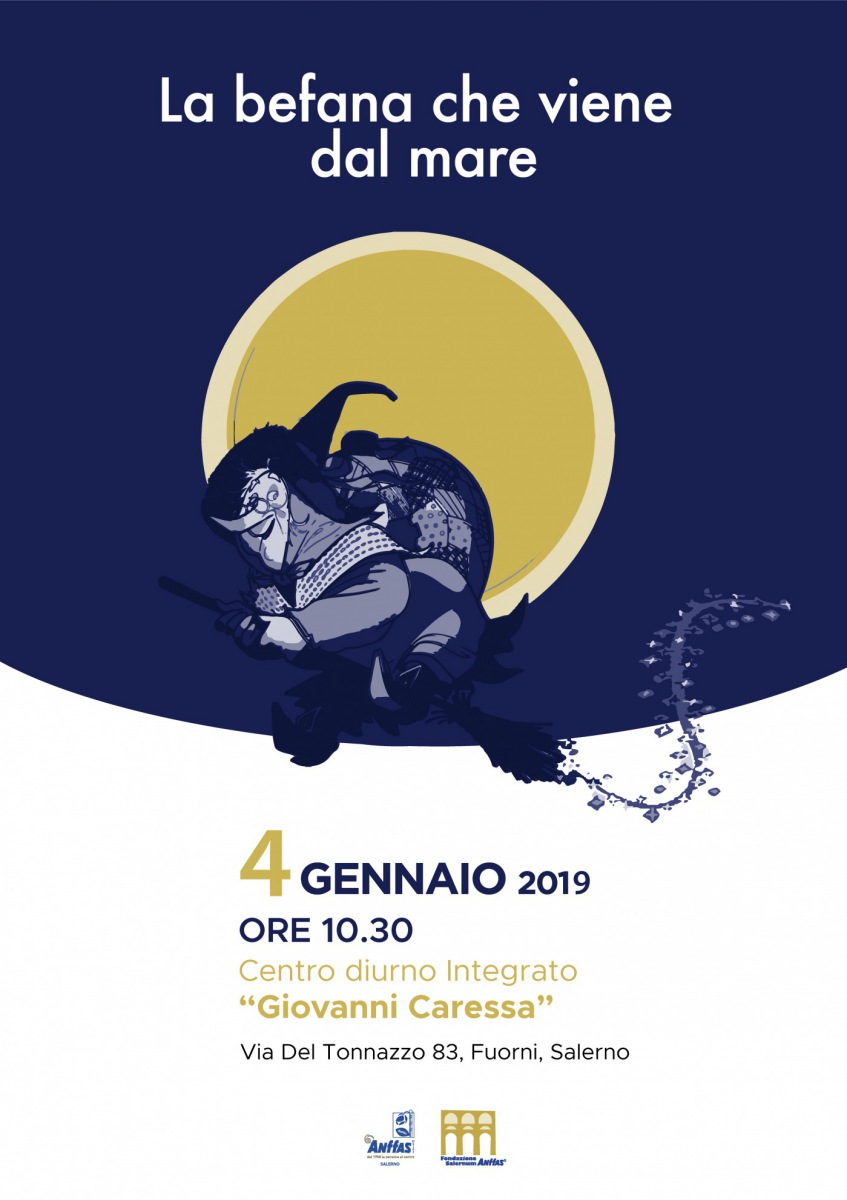 Venerdì 4 gennaio 2019, a partire dalle ore 10.30, presso la sede della Fondazione Salernum Anffas-Onlus di Salerno in via del Tonnazzo 83 a Fuorni (SA), ritorna l'appuntamento con "La Befana che viene dal mare".
