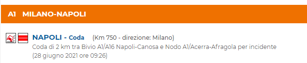 Come apprendiamo dal sito di Autostrade per l'Italia c'è stato pochi minuti fa un incidente nei pressi del bivio di Napoli-Canosa, Acerra-Afragola. Si segnala una coda in direzione Milano. Vi aggiorneremo
