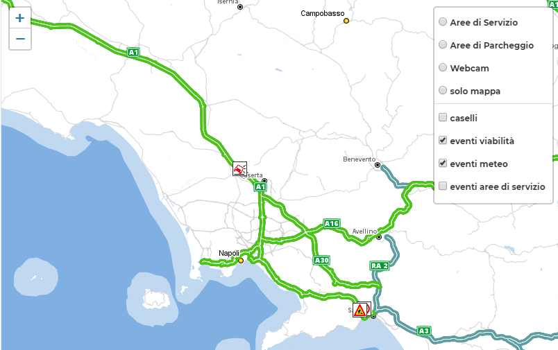 "Coda A1 Roma-Napoli (Km 719.8 - direzione: Milano). Coda di 3 km tra Caserta Nord e Capua per incidente."