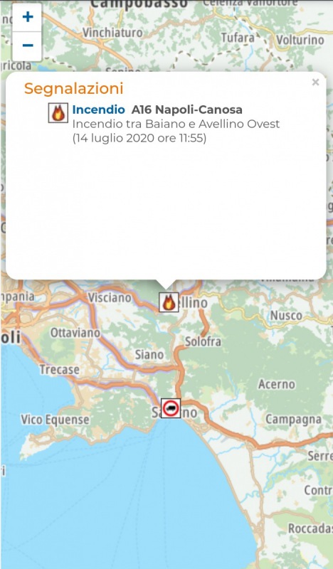 "Incendio A16 Napoli-Canosa. Incendio tra Baiano e Avellino Ovest (14 luglio 2020 ore 11:55)".