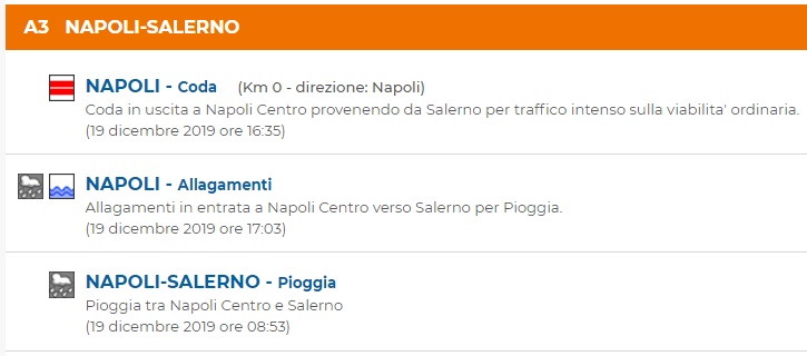 A3 Napoli-Salerno. Allagamento della carreggiata, coda e traffico in tilt