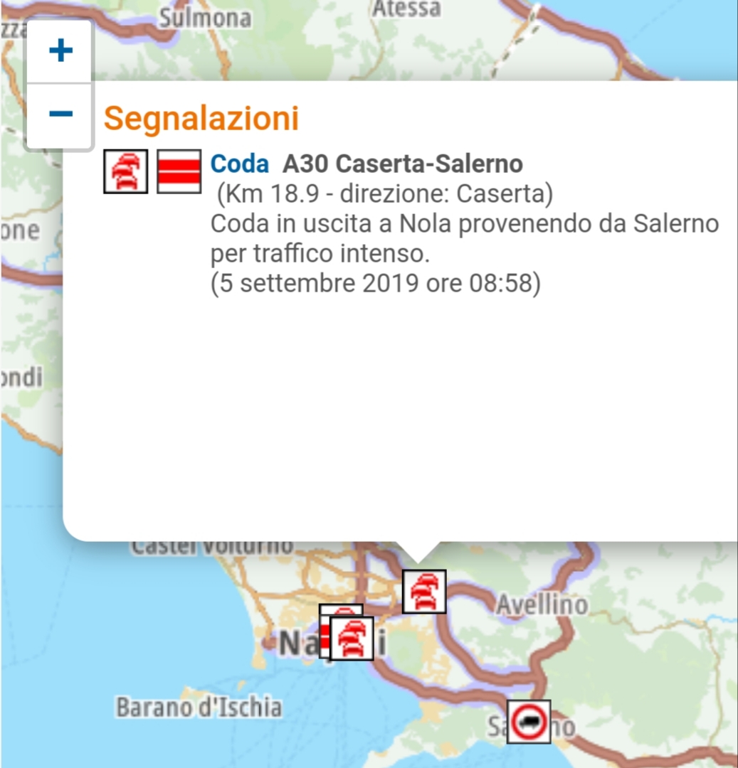 Coda in uscita a Nola provenendo da Salerno per traffico intenso. (5 settembre 2019 ore 08:58)".