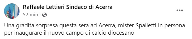 "Una gradita sorpresa questa sera ad Acerra, mister Spalletti in persona per inaugurare il nuovo campo di calcio diocesano"