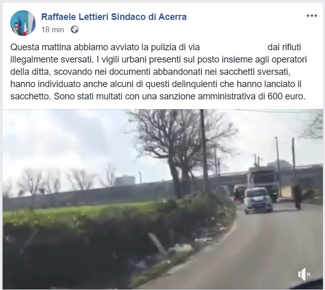 Questo quanto pubblicato dal Sindaco Lettieri sulla pagina FB