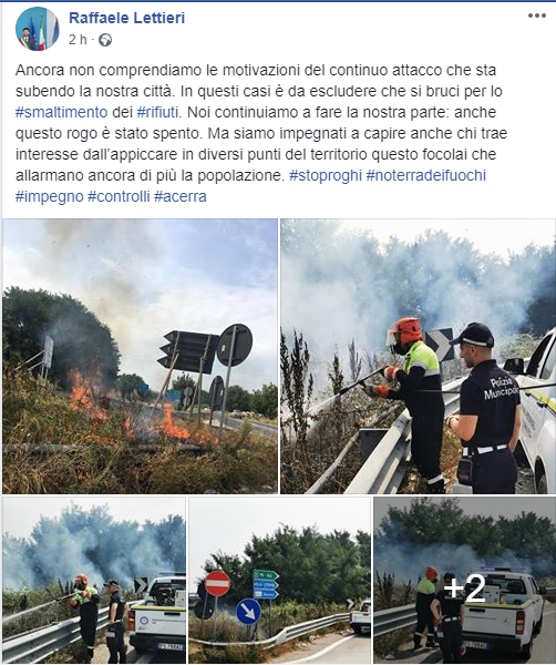 Questo quanto pubblicato sulla pagina facebook del Sindaco di Acerra, Raffaele Lettieri: