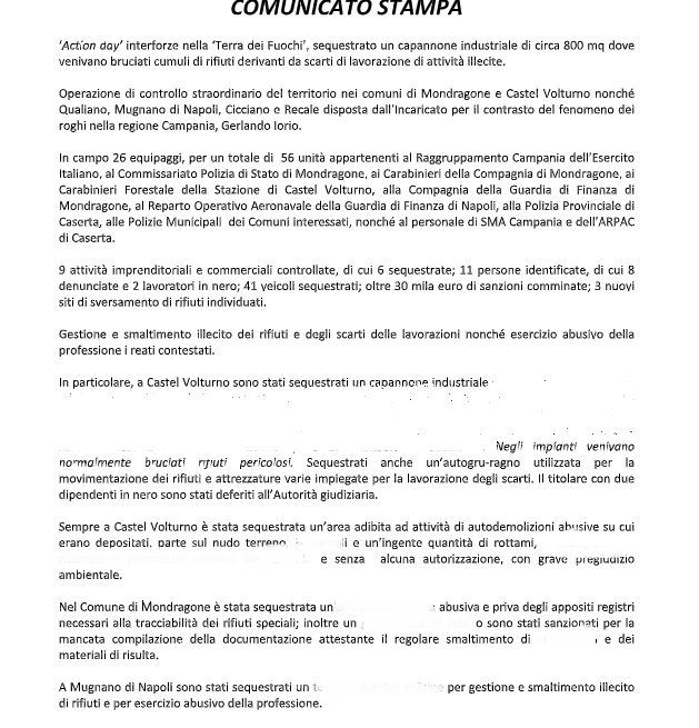 Di seguito, parte del testo del comunicato, della Prefettura di Napoli, giunto in redazione.