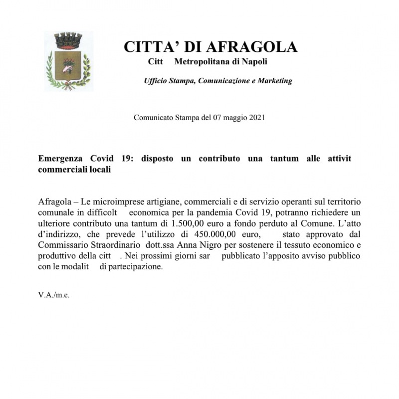 Questo il comunicato stampa diffuso dal Comune di Afragola.