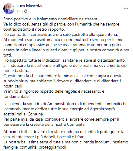 Dalla pagina Facebook del Sindaco di Agerola Luca Mascolo