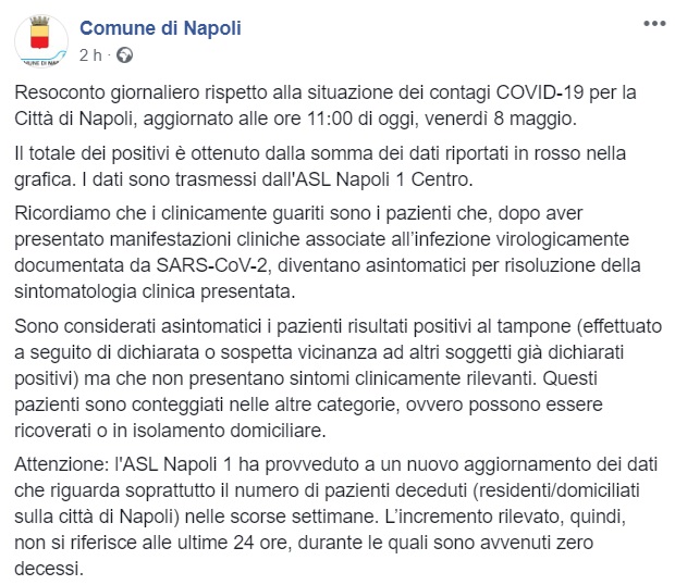 Questo quanto pubblicato sulla pagina facebook del Comune di Napoli: