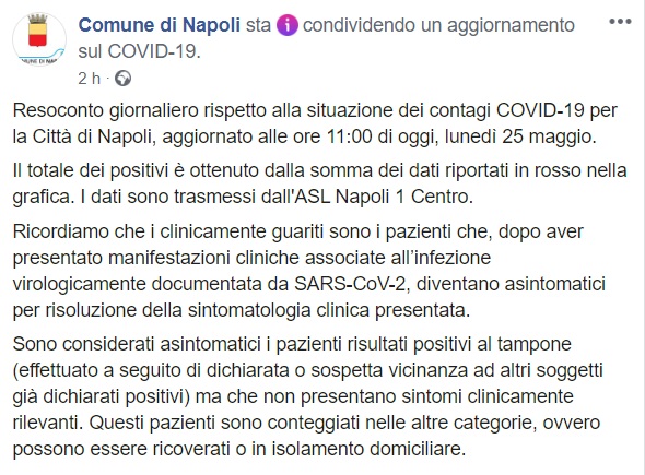 Questo quanto pubblicato sulla pagina facebook del Comune di Napoli: