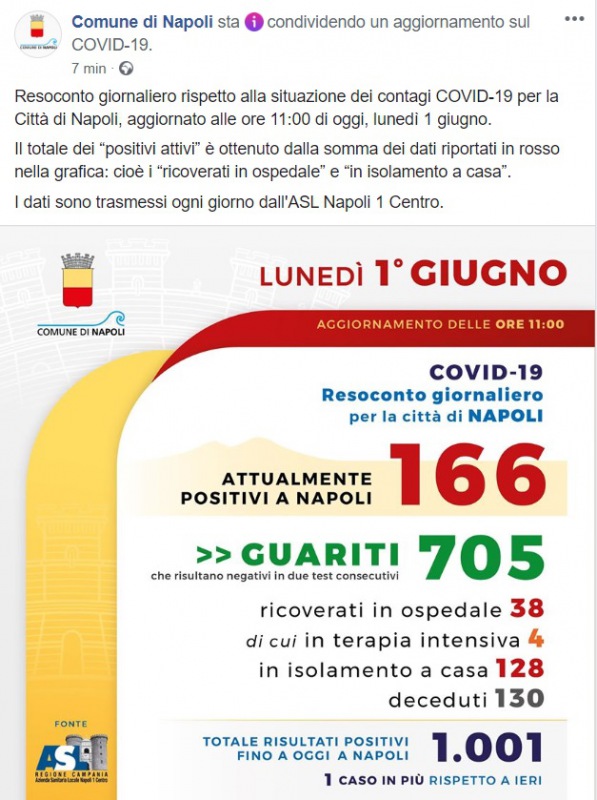 Questa quanto pubblicato sulla pagina facebook del Comune di Napoli: