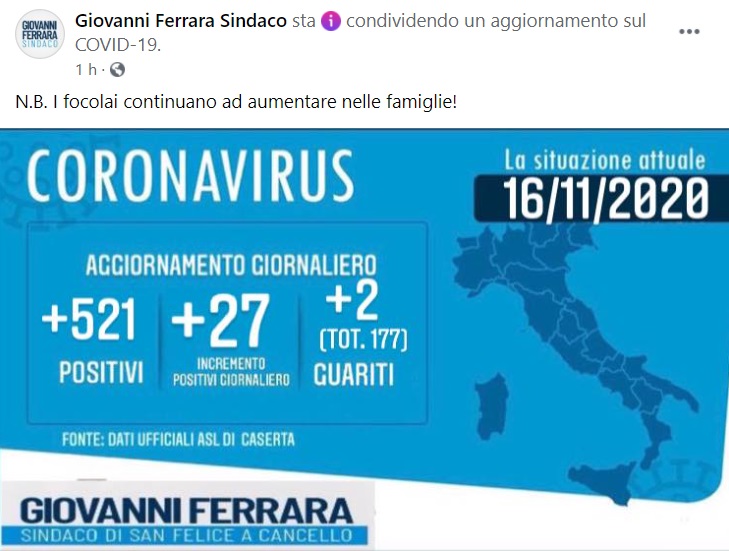 Questo quanto pubblicato sulla pagina facebook del Sindaco Ferrara: