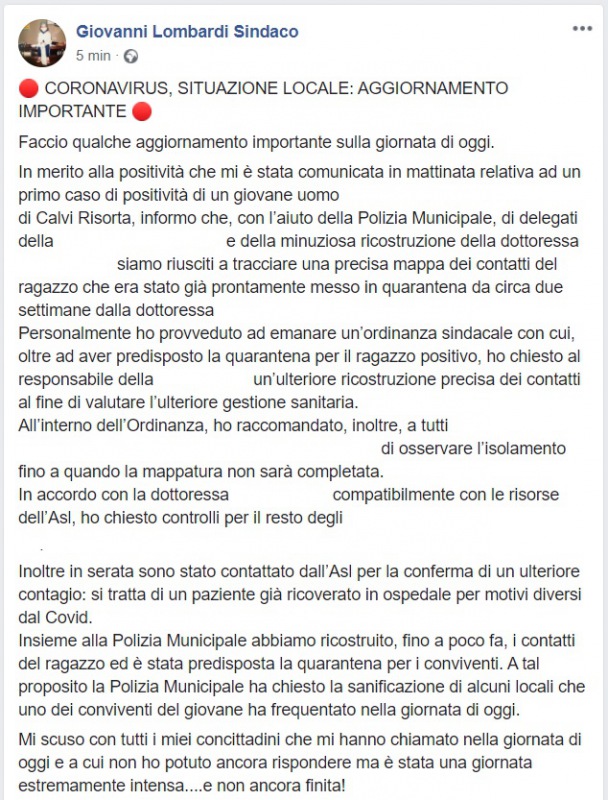 Questo quanto pubblicato dai Sindaci di Sparanise, Calvi Risorta e Pignataro Maggiore