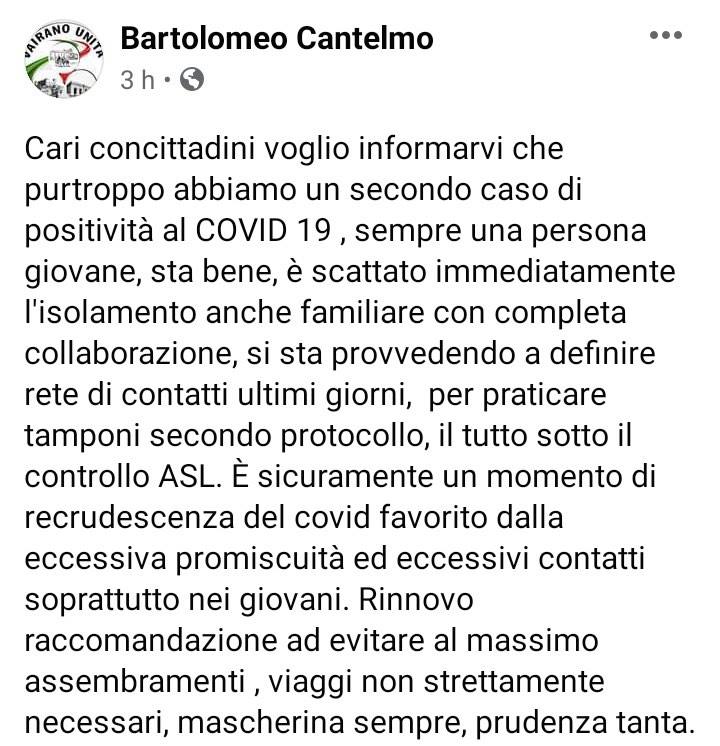 Questo quanto pubblicato dal Sindaco di Vairano