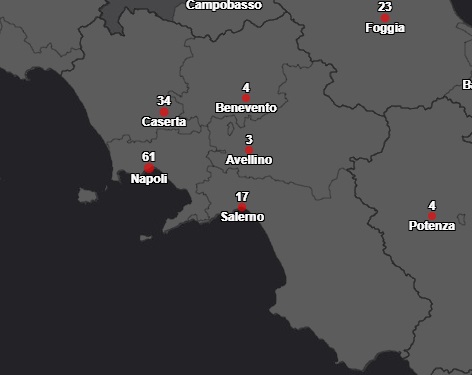 Questo l'ultimo aggiornamento pubblicato dalla Protezione Civile in merito al Coronavirus. In Campania risultano 126 positivi così distribuiti: 61 nella provincia di Napoli, 34 in quella di Caserta, 17 a Salerno, 4 a Benevento e 3 ad Avellino.