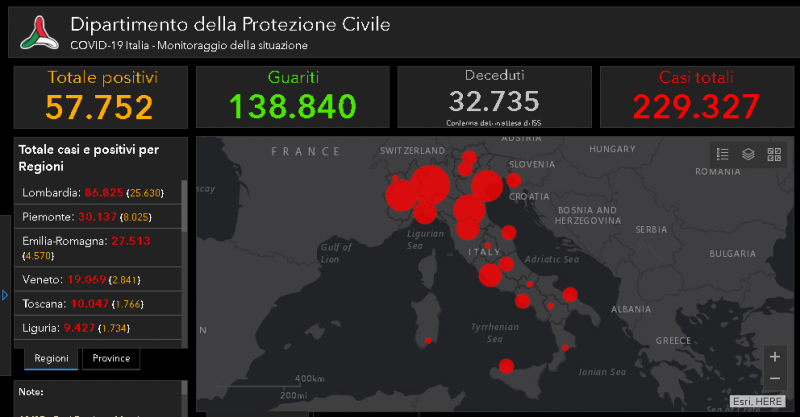 Sono 229.327 i casi totali dall'inizio della pandemia: