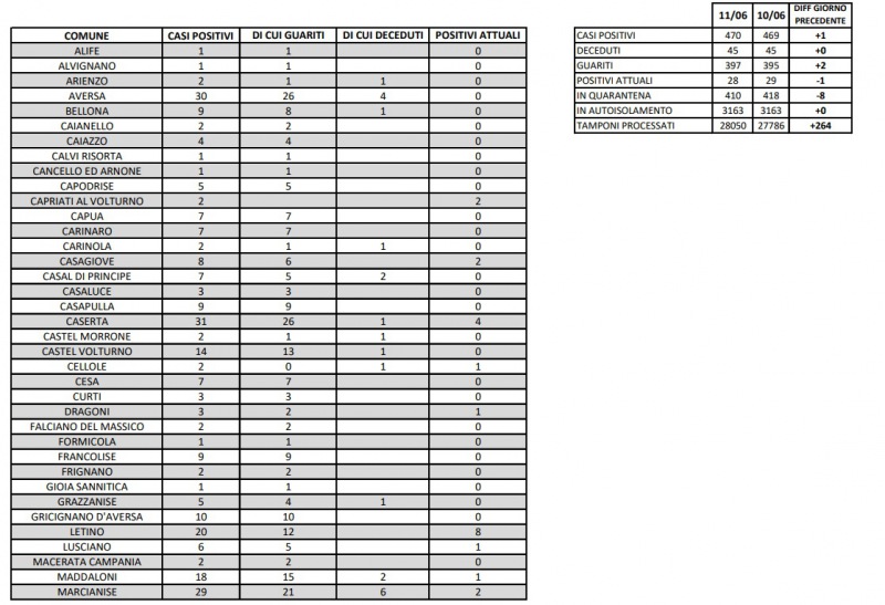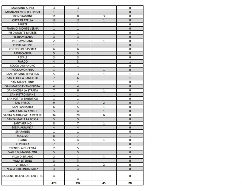 Questi i dati dell'ASL di Caserta: