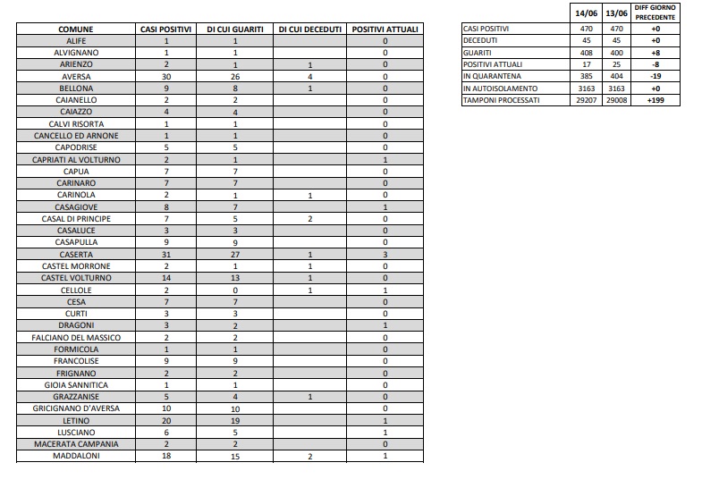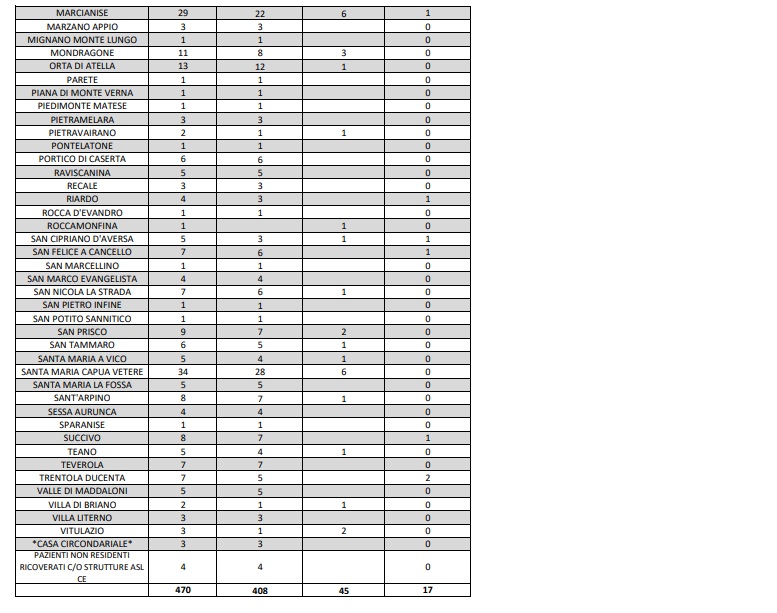 Questi i dati dell'ASL di Caserta: