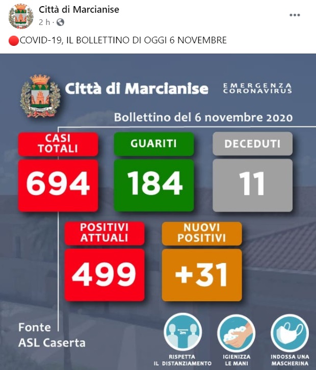 Questo quanto pubblicato sulla pagina facebook del Comune di Marcianise: