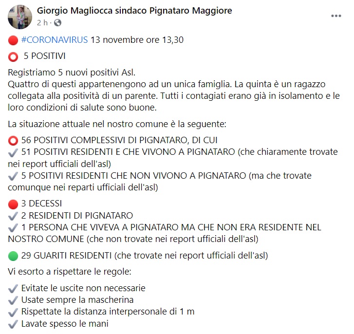 Questo quanto pubblicato sulla pagina facebook del Sindaco Magliocca: