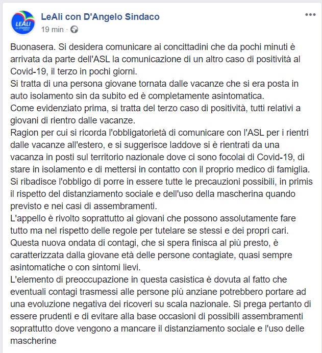 Questo quanto comunicato dal Sindaco di San Prisco