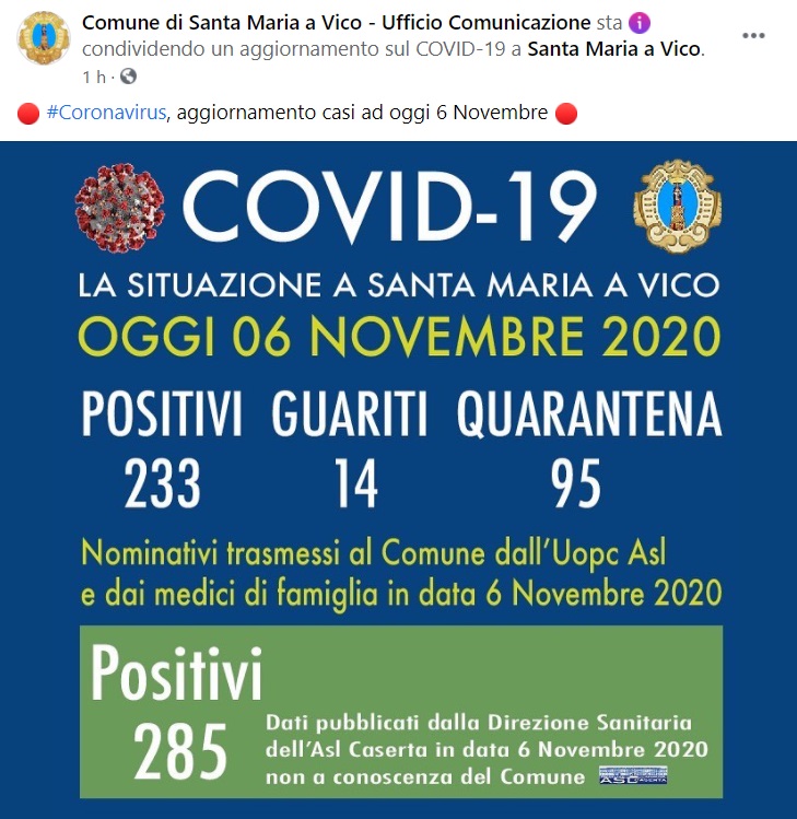 Questo quanto pubblicato sulla pagina facebook del Comune di SMAV: