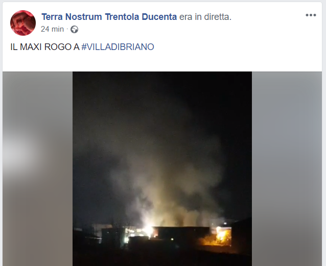 Da quanto apprendiamo dall'ottima pagina FB Terra Nostrum, sembra che l'incendio verificatosi a Villa di Briano sia continuato per tutta la notte.