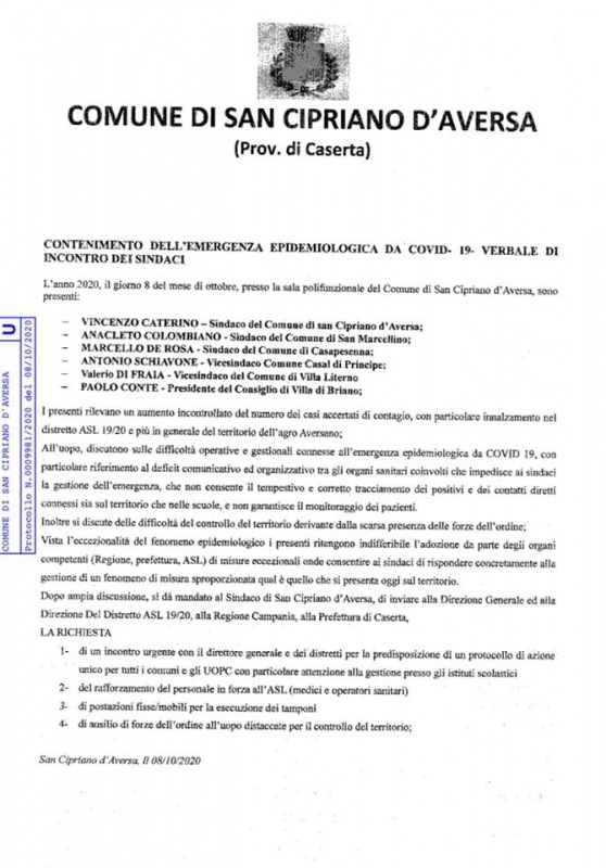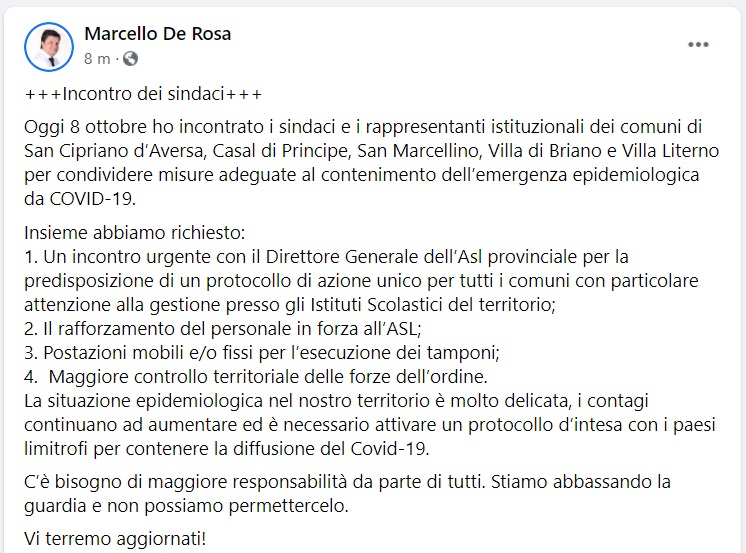 Questo quanto pubblicato dal Sindaco di Casapesenna sulla pagina facebook