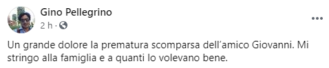 Questo il post pubblicato dal Sindaco di Parete Gino Pellegrino: "Un grande dolore la prematura scomparsa dell’amico Giovanni. Mi stringo - si legge nel post - alla famiglia e a quanti lo volevano bene".