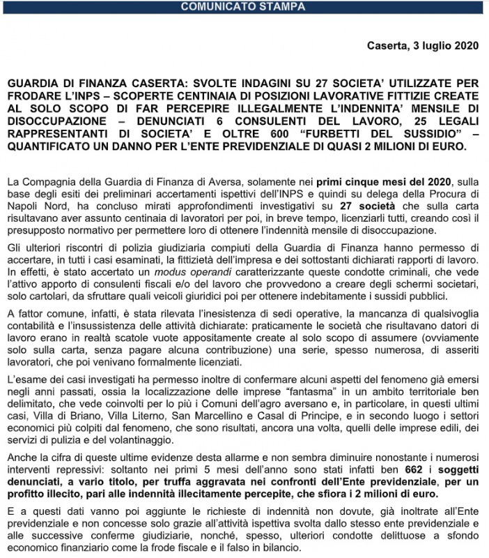 Pubblichiamo nota stampa del Comando Provinciale Guardia di Finanza Caserta