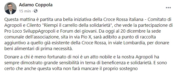 Questo quanto apprendiamo dalla pagina facebook del Sindaco Coppola: